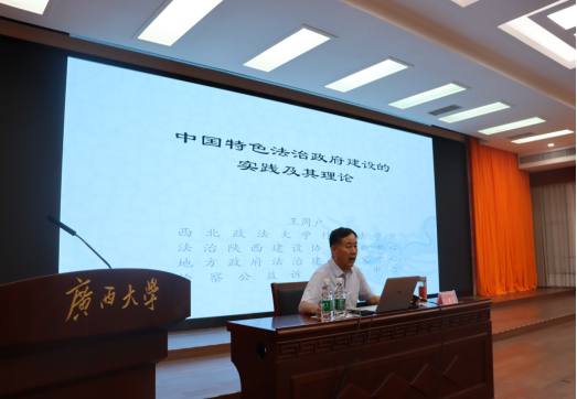 10月16日西北政法大学行政星空XK体育王周户教授应邀到我校作“中国特色法治政府建设的实践及其理论”学术专题讲座。星空XK体育本科生、硕士研究生、教师代表及西北政法大学在邕部分校友到场聆听讲座,讲座由星空XK体育教授汪太贤主持。