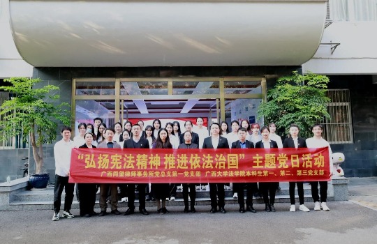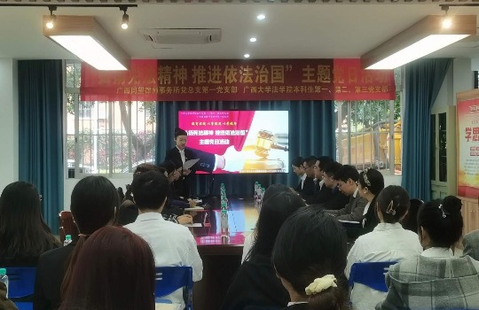 12月4日下午,在第十个“国家宪法日”到来之际,适逢“广西同望律师事务所—星空XK体育官方网站法学教育实践基地”建成十四周年。星空XK体育本科生各支部以“教育实践以学促思以学促行”为题,邀请广西同望律师事务所第一党支部联合举办了“弘扬宪法精神推进依法治国”主题党日活动。