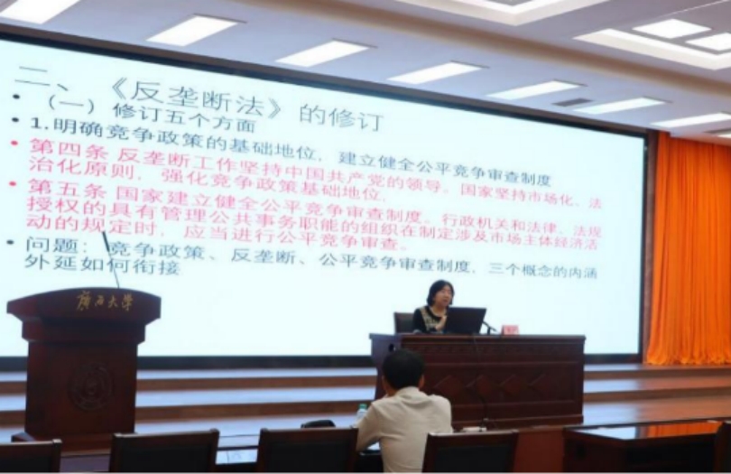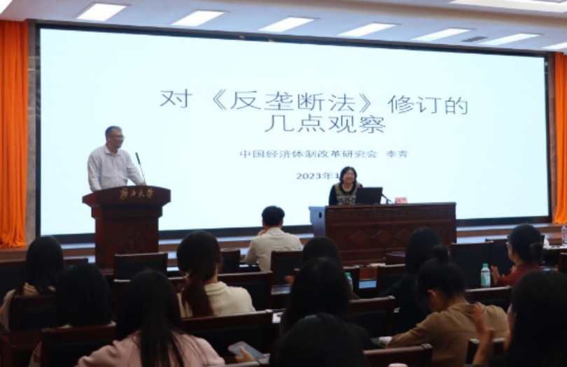 11月29日,中国经济体制改革研究会副会长李青应邀到星空XK官网作“对《中华人民共和国反垄断法》修订的几点观察”学术专题讲座。讲座由星空XK体育院长许光耀主持。中国经济体制改革研究会产业政策和竞争政策专委会副主任梅丽鹏、星空XK体育副院长董笃笃与谈,星空XK体育教师代表、本科生、硕士研究生参加了本次讲座。