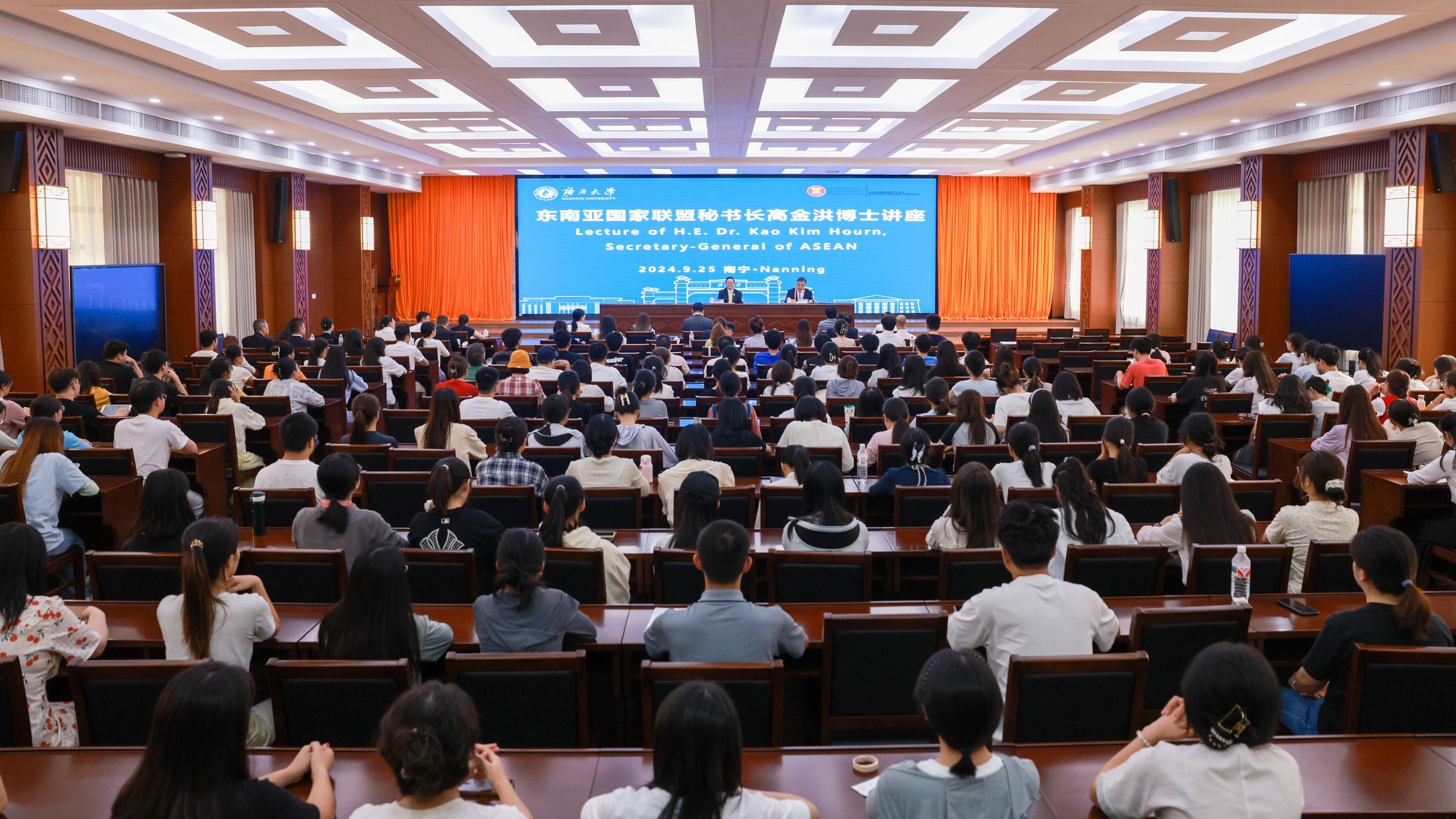随后,高金洪向星空XK体育官方网站200余名师生作了题为“增进友谊与合作:人文交流在中国-东盟关系中的作用”的讲座。我校副校长肖建庄主持讲座。讲座中,高金洪深入浅出地阐明了中国与东盟国家的交流不仅仅是政府间的交流,经贸的交流,更重要的是人与人之间的沟通和交流。他强调今年是中国-东盟文化交流年,双方需持续关注教育交流和数字交流等各方面的合作与交流,同时再次提出了自己对加强中国-东盟间交流的“7P”(即目的、人文、过程、成果、提升、定位、表现等7个方面)理念,加深双方人文交流的深度和广度。