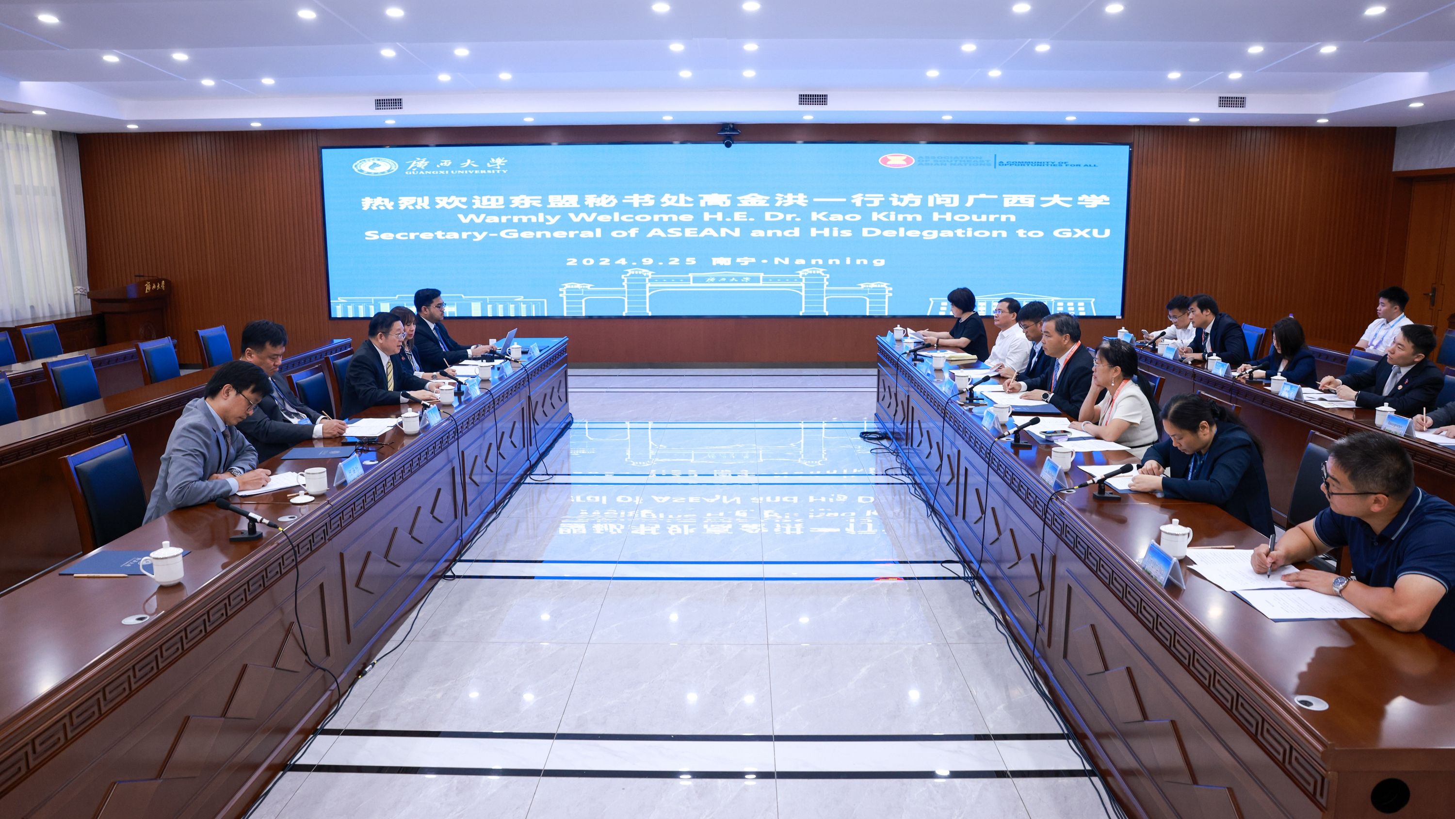 9月25日,东南亚国家联盟秘书长高金洪(Secretary-General of ASEAN, H.E. Dr.Kao Kim Horn)携代表团访问星空XK体育官方网站,并与师生代表交流、座谈。我校校长韩林海、副校长肖建庄会见来宾。
