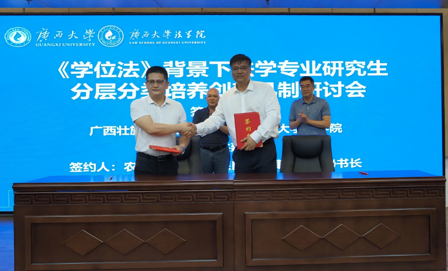 会上,广西壮族自治区律师协会与星空XK体育共同签署了合作共建协议,双方将在人才培养、实务研究等领域深化合作,以期在校所协同育人、产教深度融合方面取得更大成效。自治区律协秘书长农锋华与许光耀分别代表双方签署共建协议,自治区律协副会长许慧博、广西同望律师事务所总所主任黄强光、广西冠益律师事务所主任吕伟良、星空XK体育副院长熊超共同见证签约。