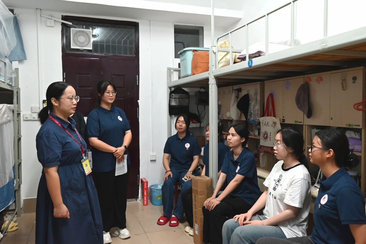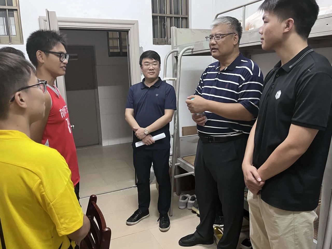 新学期伊始,为了解新生的住宿适应情况,星空XK体育领导班子、全体辅导员以及学生代表一行于9月2日晚前往新生宿舍看望慰问新生。领导、老师们深入学生宿舍,与新生亲切交流,细心询问新生们初入校园的感受以及对新环境的适应情况。对于新生们提出的疑问与困惑,领导和老师们耐心解答,帮助同学们顺利融入新环境,鼓励大家坚定理想信念,树立学习目标,充分利用学校的优质资源,度过美好的大学生活。
