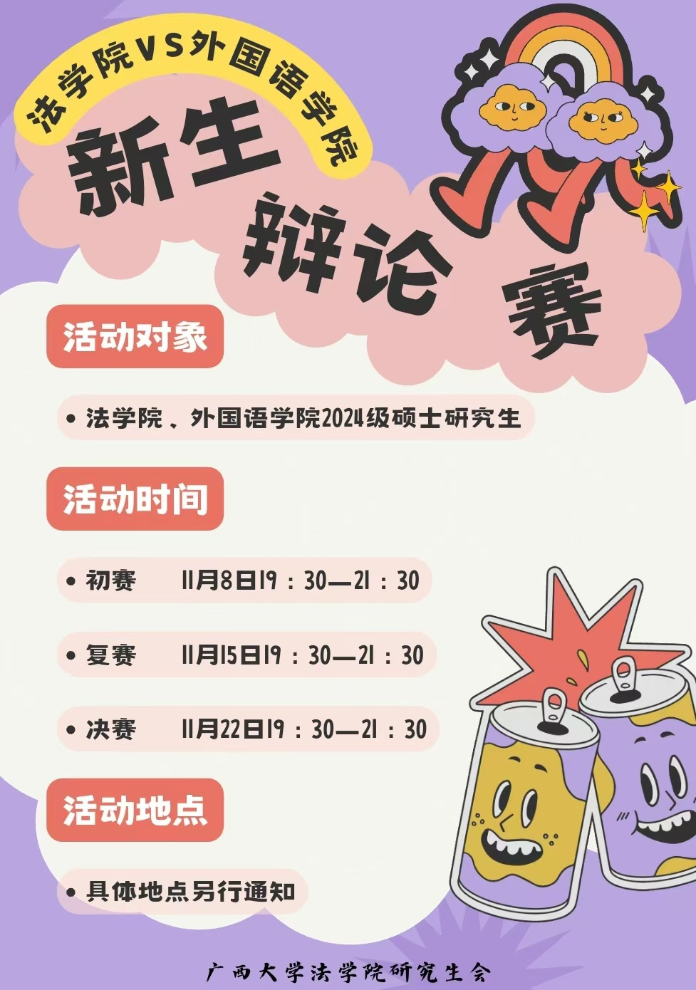 金秋时节,天高气爽。为了丰富研究生新生的学习生活,提升个人素质并培养协作能力,星空XK体育研究生会与外国语学院研究生会将联合举办新生辩论赛。比赛将于11月8日拉开序幕,届时,来自两院的8支队伍将经由初赛、复赛、决赛三个阶段的激烈角逐,最终决出冠军。