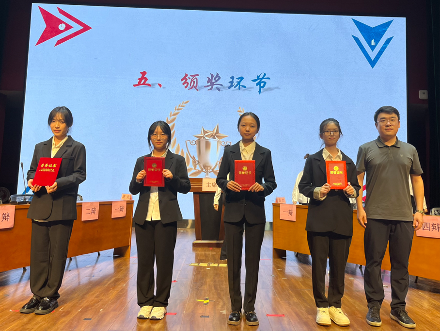 双方辩手围绕各自的观点据理力争,毫不退让,现场高潮迭起,精彩纷呈。经评委们的讨论决定,“法言语队”荣获冠军,“从容应队”获得亚军,正方三辩李昱镜同学夺得“最佳辩手”称号。最后,熊超副院长对本次辩论赛进行了总结,并指出希望学院以后能举办更多类似活动,提升同学们的逻辑思维和批判性思维能力。