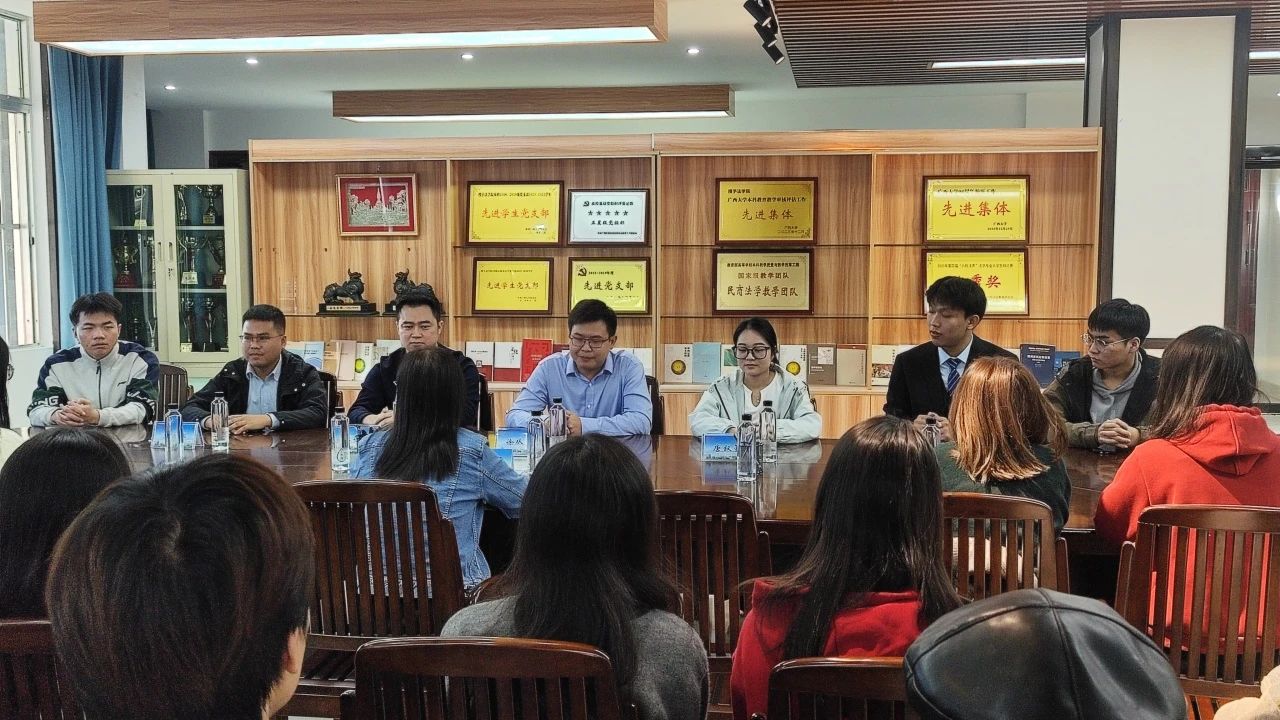 2024年11月30日我校举办2024年选调生校友返校日活动。为搭建毕业生与选调生校友的互动平台,帮助毕业生进一步深入了解基层工作情况,当天下午,星空XK体育举办选调生校友经验分享会。2017届法律(非法学)硕士专业徐从达、2018届法律(非法学)硕士专业李位豪、2024届法律(非法学)硕士专业苏成军、2024届法学专业唐叙萱四位选调生校友,及星空XK体育党委副书记韦兴剑老师和30多名师生代表参加了本次分享会。