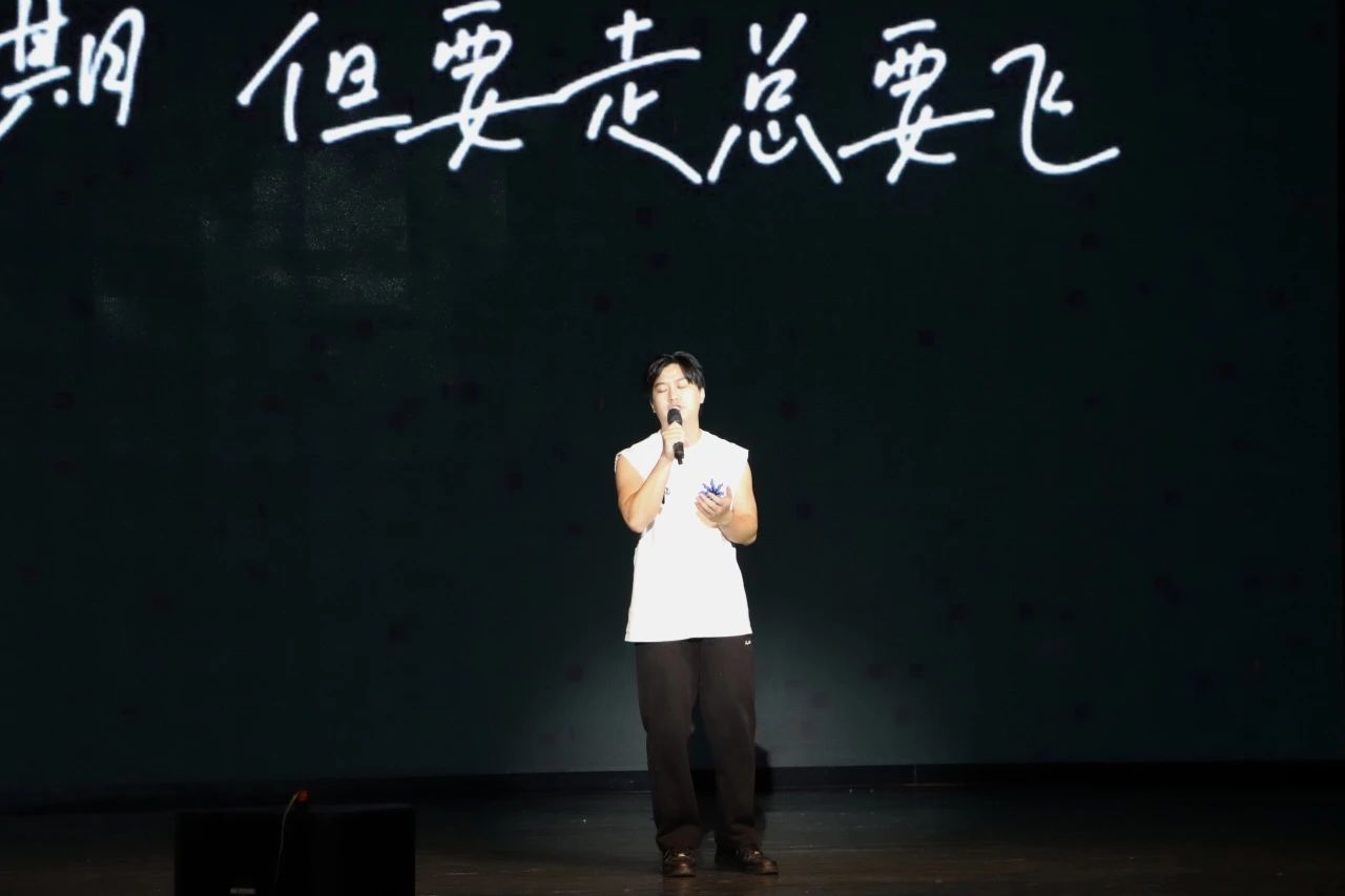 朗诵者声音刚健有力,文字洒脱又富有力量,以文字代替内心,于高山之巅见大河奔涌,于群峰之上觉长风浩荡,毕业生充满朝气,表达了朗诵者鼓励毕业生不断探索新领域、奔赴祖国大地、建设美丽祖国的美好祝愿。