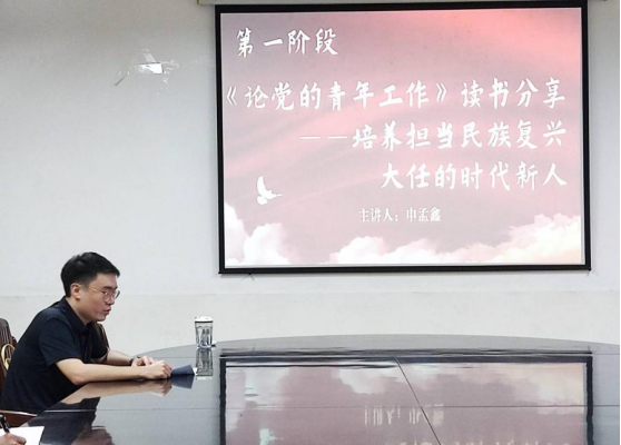 会议伊始,院团委书记申孟鑫老师向参会成员谈了《论党的青年工作》一书的读书心得。他指出团支书在日常工作开展中的重要作用,强调团支书要提高政治站位,在工作过程中应该注意工作方式方法,树立优良的团员骨干形象,最大限度地发挥团员骨干力量,逐渐成长为堪当时代大任的新青年。