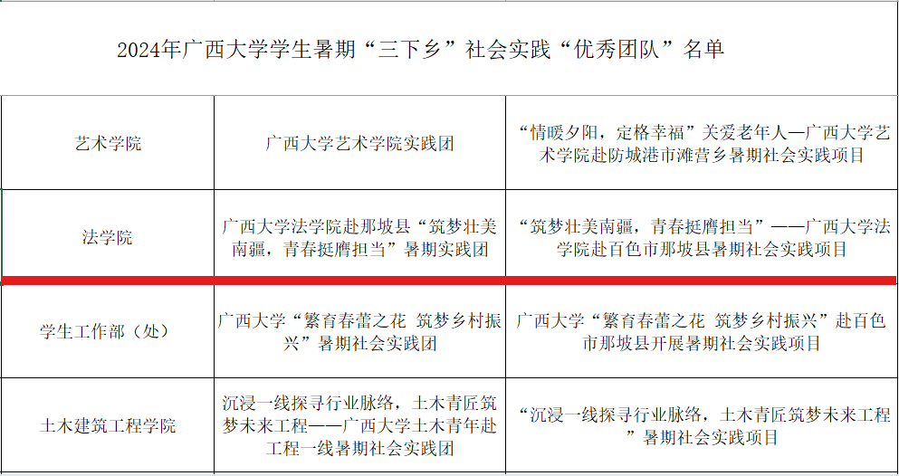 2024年星空XK体育官方网站学生暑期“三下乡”社会实践“优秀团队”名单
