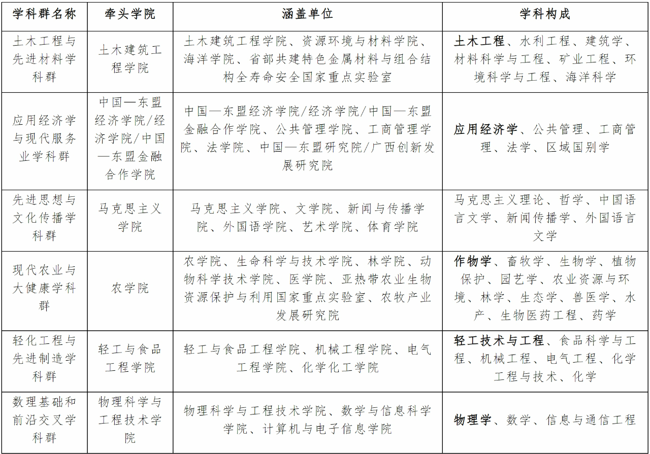 六个学科群及涵盖单位如下表: