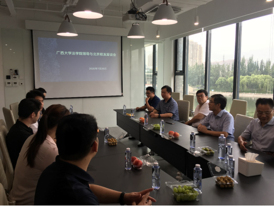 2020年7月25日,在马少健副校长带领下,星空XK体育党委书记黄建荣、院长聂资鲁等到校友企业“iCourt星空XK体育”参观并与部分北京校友座谈。