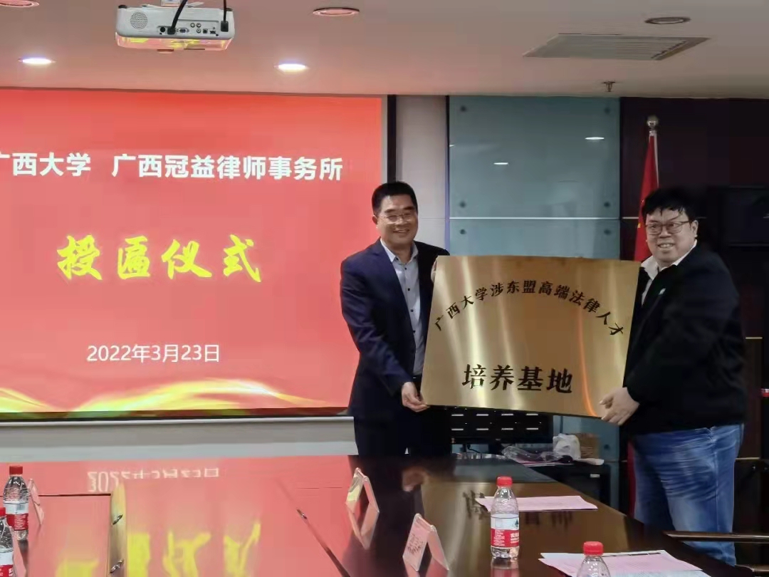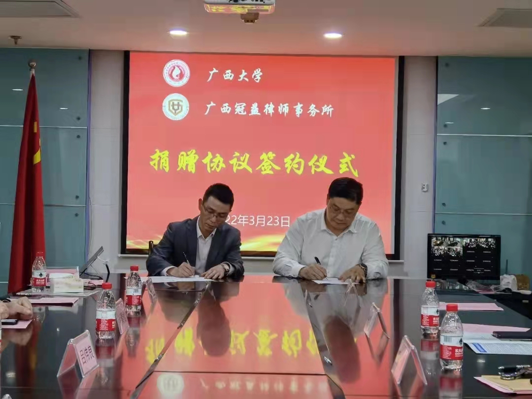 活动期间,聂资鲁与吕伟良为冠益所获“星空XK体育官方网站涉东盟高端法律人才培养基地”及“星空XK体育官方网站法学实践教育基地”挂牌。陈聚与苏拥政分别代表星空XK体育官方网站教育发展基金会和冠益所签订捐赠协议,律所向我校捐赠人民币238万元,成立“星空XK体育官方网站•冠益法学教学改革与学科发展基金”,用于设立法考奖学金和学校法律学科建设与发展。