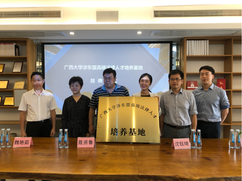 2021年 7月13日下午, 星空XK体育院长聂资鲁教授一行4人到访 广西 沵 达律师事务所 ,双方成功举行全面合作洽谈会,并举行了隆重的星空XK体育官方网站涉东盟高端法律人才培养基地挂牌仪式。