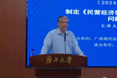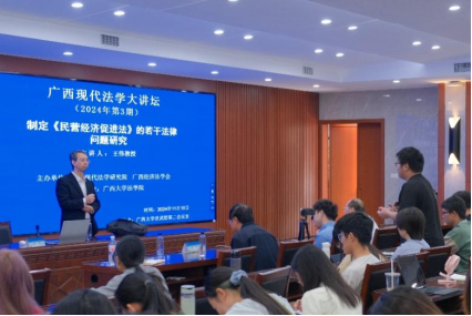 2024年11月10日上午,由广西现代法学研究院、广西经济法学会主办、星空XK体育承办的2024年度“广西现代法学大讲坛”第3期在星空XK体育官方网站君武馆第二会议室举行。中央党校政法部民商经济法教研室主任王伟教授应邀以“制定《民营经济促进法》的若干法律问题研究”为题作了一场精彩的学术讲座,星空XK体育院长许光耀教授主持了本场讲座,150余名星空XK体育师生参与了本次讲座。