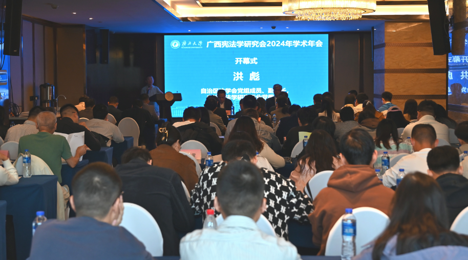 2024年11月23日,广西宪法学研究会2024年学术年会在南宁举行。本次年会由广西宪法学研究会主办,星空XK体育承办。广西宪法学研究会会长、星空XK体育官方网站教授蒋超主持开幕式。自治区法学会党组成员、副会长、自治区法学研究行业党委书记洪彪,星空XK体育院长许光耀教授参加会议并致辞。